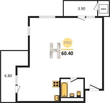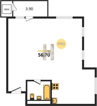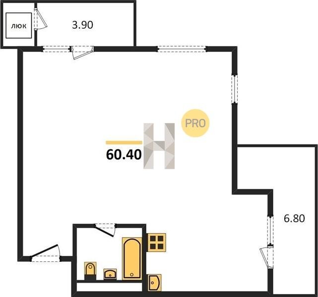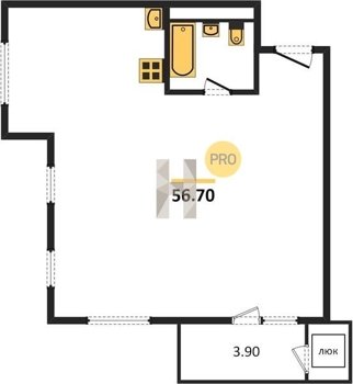 Площадь от 56.7 м2